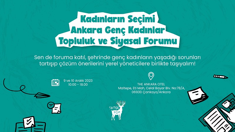 Genç kadınlar 9-10 Aralık tarihlerinde düzenlenecek olan topluluk ve siyasi forum etkinlikleriyle Ankara’da buluşacak. The Ankara Otel’de gerçekleştirilecek olan etkinliğin ilk günü olan 9 Aralık tarihinde genç kadınların yerel taleplerinin tespit edilmesine yönelik topluluk forumu düzenlenecek. Etkinliğin ikinci günü olan 10 Aralık tarihinde ise genç kadınlar siyasal forumda taleplerini belediye temsilcileri, farklı siyasi partilerin temsilcileri ve yerel karar alıcılara iletiyor olacaklar!