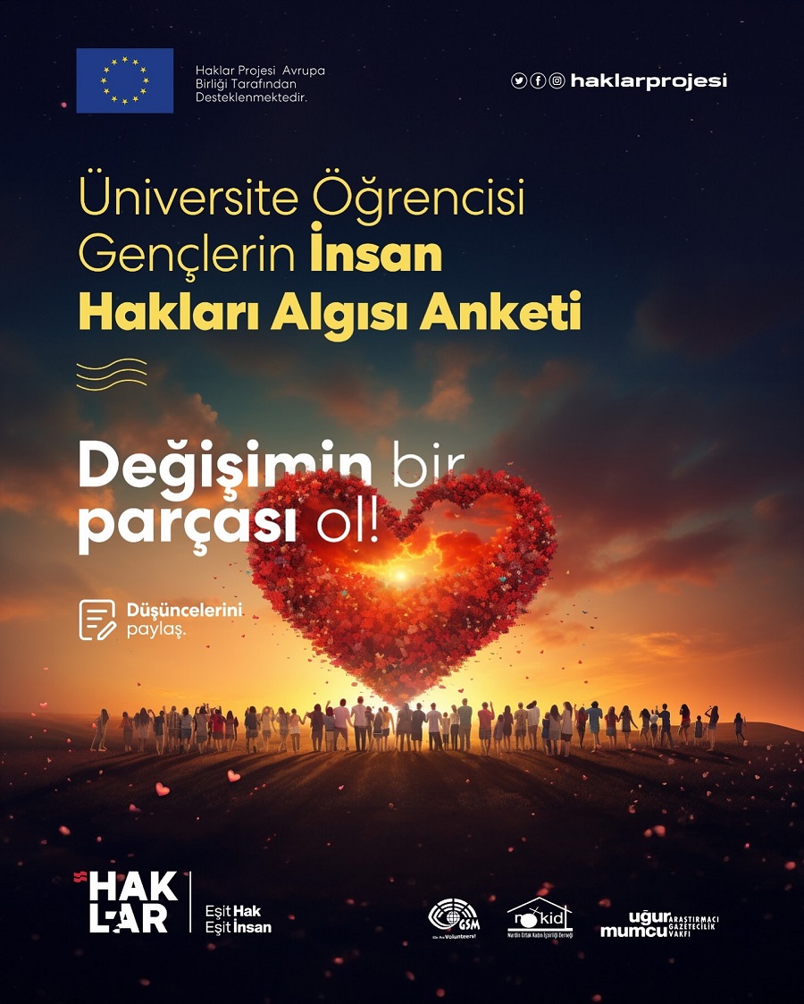 Kısa adı Haklar Projesi olan, 'Kırılgan Gruplardan Gençlerin İnsan Haklarını Geliştirmek İçin Üniversite Gençliğinin Güçlendirilmesi Projesi', 18-25 yaş grubundaki üniversite öğrencilerini anket çalışmasına davet ediyor.