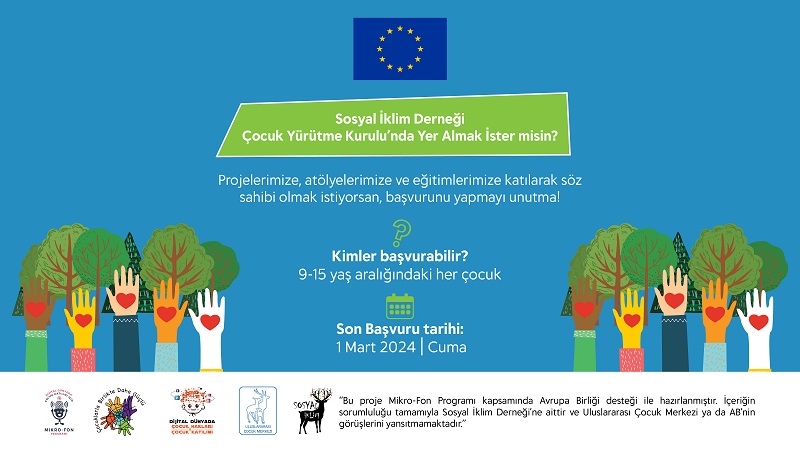 2014 yılından bu yana çocuk katılımı, gençlik katılımı ve iklim eylemi odaklı çalışmalar yürüten Sosyal İklim Derneği, yeni döneminde Çocuk Yürütme Kurulu için gönüllü üyelerini arıyor!