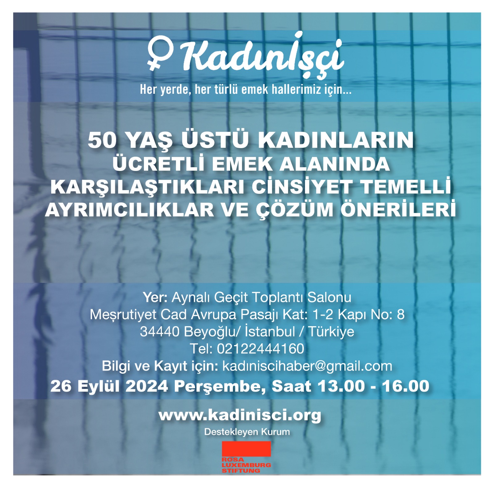 Kadınİşçi, 50 Yaş Üstü Kadınların Ücretli Emek Alanında Karşılaştıkları Cinsiyet Temelli Ayrımcılıklar ve Çözüm Önerileri isimli araştırma raporunu hazırladı. Araştırma sonuçlarını sunmak ve birlikte tartışmak için 26 Eylül Perşembe günü tüm kadınları etkinliğe davet ediyor.