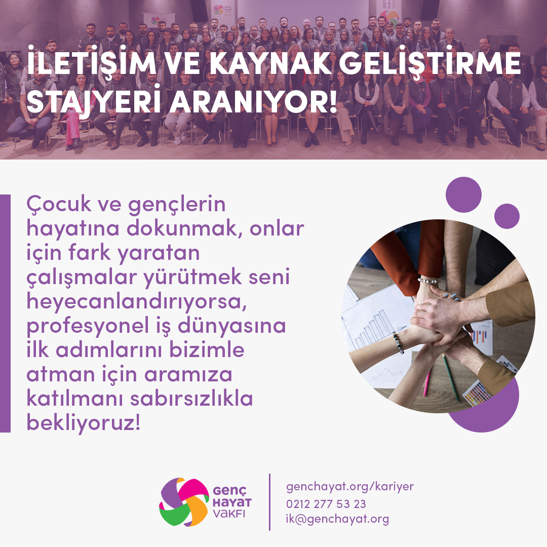 Genç Hayat Vakfı İletişim ve Kaynak Geliştirme Stajyeri Arıyor