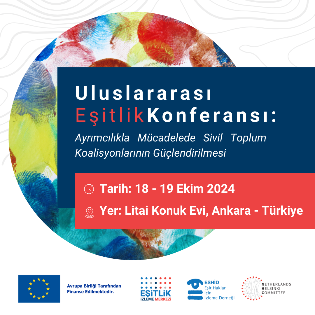 Hollanda Helsinki Komitesi (NHC) ve Eşit Haklar İçin İzleme Derneği (ESHİD) tarafından düzenlenen Uluslararası Eşitlik Konferansı 18-19 Ekim 2024 tarihinde Ankara’da gerçekleşecek. Bu yılın teması “ Ayrımcılıkla Mücadelede Sivil Toplum Koalisyonlarının Güçlendirilmesi”.