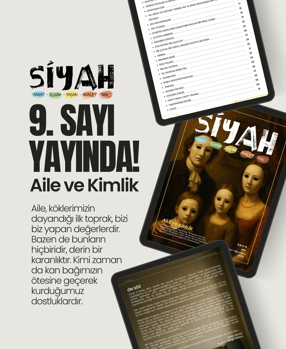 SİYAH E-Dergi, bu sayısıyla bir kez daha sanatsal üretimi toplumsal meselelerle buluşturarak dijital ortamda özgür bir ifade alanı yaratma iddiasını güçlendiriyor. Hem bireysel hafızaya hem kolektif deneyimlere seslenen 9. sayı, yeni katkılar ve yeni okurlarla buluşmayı hedefliyor.