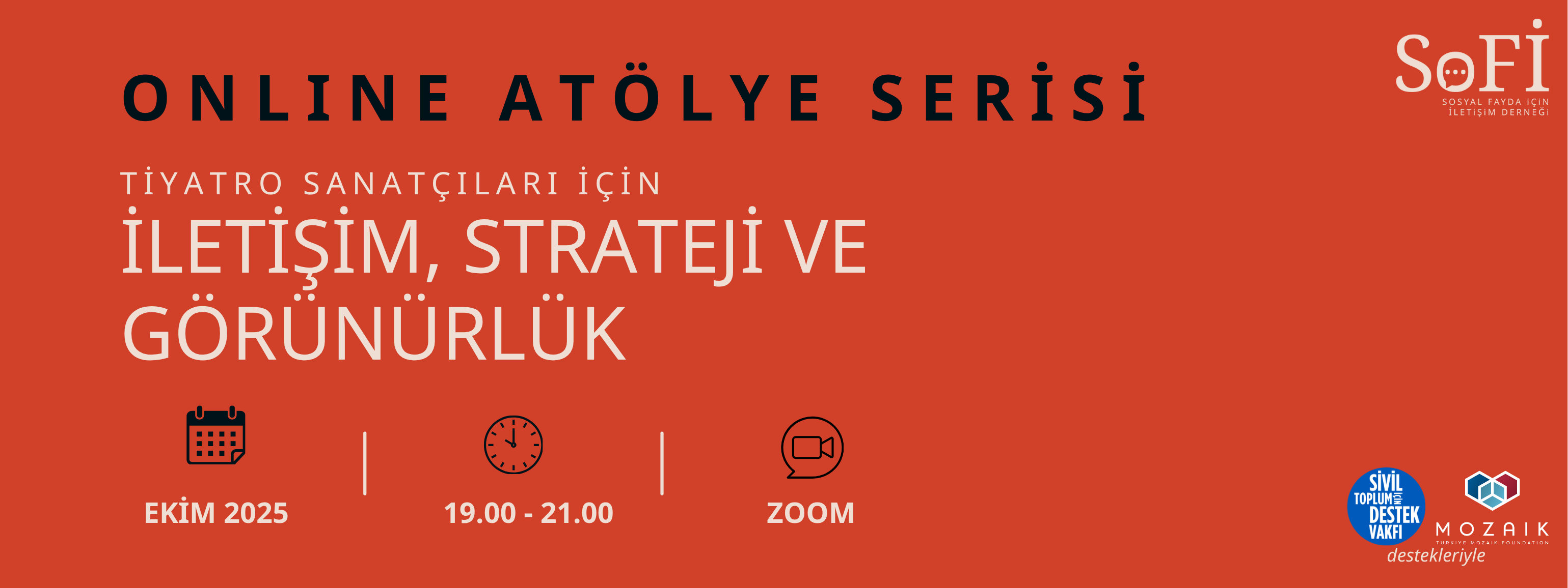 Sosyal Fayda için İletişim Derneği (SoFİ), tiyatro sanatçılarının iletişim becerilerini güçlendirmelerini, dijital araçları daha etkili kullanmalarını ve görünürlüklerini artırmalarını desteklemek amacıyla Ekim ayı boyunca online atölyeler düzenliyor.