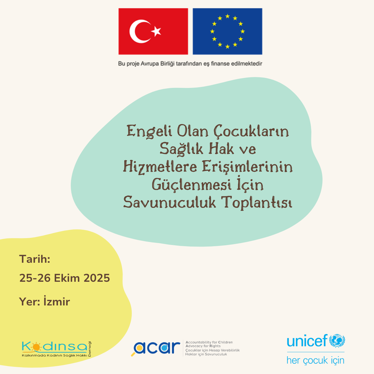 İki gün sürecek toplantı, Avrupa Birliği’nin finansal desteğiyle UNICEF tarafından yürütülen ACAR Programı – Sivil Toplum Örgütleriyle İş Birliği Programı kapsamında düzenleniyor. Etkinlik, çocuk hakları, sağlık politikaları ve engellilik alanında çalışan sivil toplum temsilcileri, akademisyenler, sağlık profesyonelleri ve yerel aktörleri bir araya getirmeyi planlıyor.