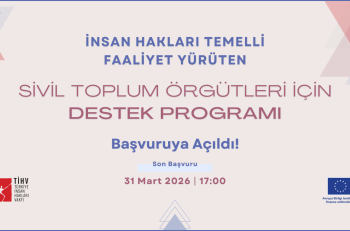 Türkiye İnsan Hakları Vakfı’nın (TİHV), Avrupa Birliği desteğiyle yürüttüğü “Türkiye’deki İnsan Hakları Aktörlerinin Taban Merkezli Bir Yaklaşımla Desteklenmesi ve Korunması Projesi” kapsamında, insan hakları savunucularının kapasitelerini güçlendirerek yürüttükleri çalışmalarda daha etkin olmalarını desteklemek amacıyla tasarladığı İnsan Hakları Savunucuları için Mesleki Gelişim Programı, başvuru kabul etmeye devam ediyor.