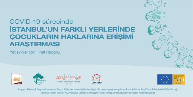 Tarlabaşı Toplum Merkezi’nin ETKİNİZ desteği ve Başak Sanat Vakfı, Small Project İstanbul ve Sulukule Gönüllüleri Derneği iş birliğiyle hazırladığı “Covid-19 sürecinde İstanbul’un Farklı Yerleşimlerinde Çocukların Haklarına Erişimi” yetişkin final raporu Arapça, İngilizce, Kürtçe ve Türkçe yayınlandı. Rapor ile birlikte yayınlanan araştırma rapor özeti ve infografiğe buradan; KoronadaÇocukHakları adlı web sitesine ise buradan ulaşabilirsiniz.