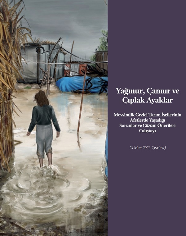 Kalkınma Atölyesi, 24 Mart 2021’de gerçekleştirdiği “YAĞMUR, ÇAMUR VE ÇIPLAK AYAKLAR” çalıştayını, mevsimlik gezici tarım işçilerinin ve çocuklarının afetlerde yaşadıkları sorunları ve bu sorunlara yönelik geliştirebilecek çözüm önerileri ile içeriğinin kalıcı olması amacıyla raporlaştırdı.