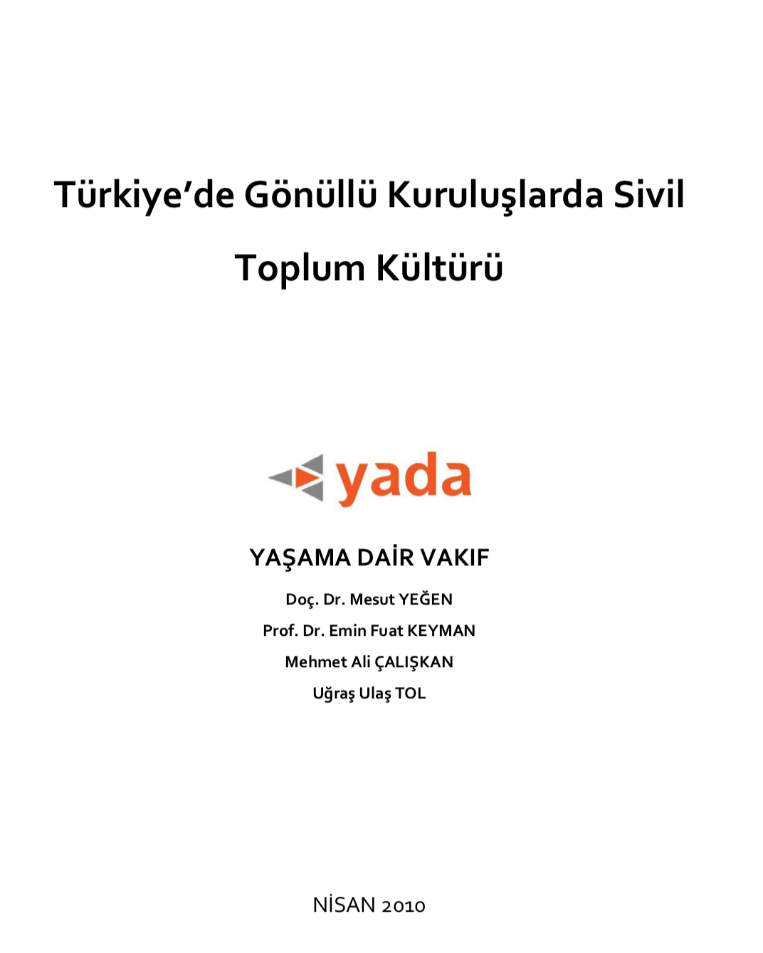YADA: Türkiye’de Gönüllü Kuruluşlarda Sivil Toplum Kültürü