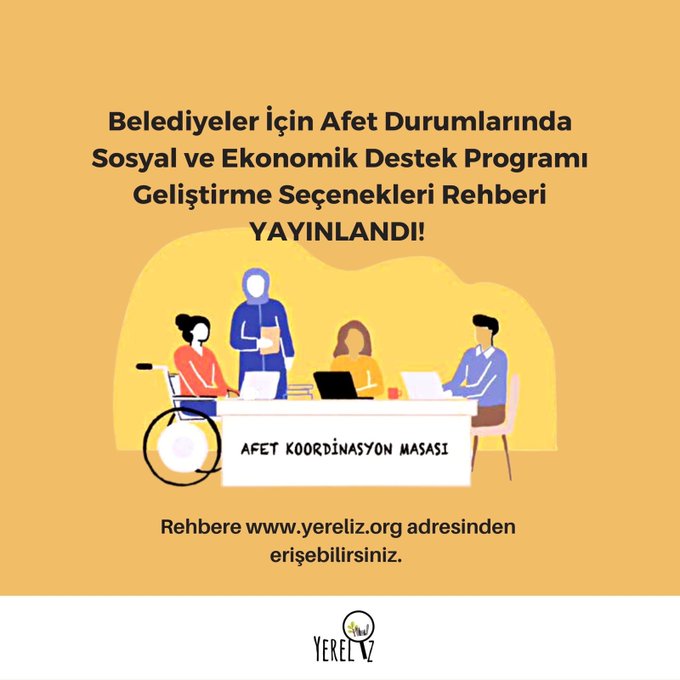 Belediyeler için Afet Durumlarında Sosyal ve Ekonomik Destek Programı Geliştirme Seçenekleri Rehberi, özellikle COVID-19 pandemisi sürecinde uluslararası kuruluşların pandemiye yönelik sosyal ve ekonomik destek programı geliştirilmesine rehberlik etmek amacıyla yayınladıkları ve büyük çoğunluğu Türkçeye çevrilmemiş çalışmalara dayanan bir derleme niteliği taşıyor. Uluslararası kuruluşların önerilerini Türkiye gerçekliğine uyarlayarak sunmaya çalışan rehber, COVID-19 başta olmak üzere, benzer afet durumlarında yaşanan gelir kayıplarının asgariye indirilmesi amacıyla belediyelerin sosyal ve ekonomik destek programları geliştirme süreçlerine katkı sunmayı hedefliyor. Rapora buradan ulaşabilirsiniz.