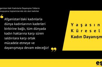 Eşitlik İçin Kadın Platformu (EŞİK), Afgan kadınlarla küresel dayanışma toplantılarının ikincisini 21 Ağustos 2021’de düzenledi. 5 kıtadan ve 22’den fazla ülkeden 200 kadınının katıldığı toplantıda, Afganistanlı kadınlar için ortak mücadele kararı çıktı. EŞİK’in çağrısıyla başlayan Afganistanlı kadınlarla küresel dayanışma toplantıları devam edecek. Ayrıca, EŞİK öncülüğünde bir kadın ağı oluşturma çalışmalarına başlanacak.