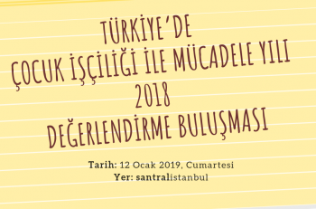 2018 Çocuk İşçiliğiyle Mücadele Yılı olduğu için; hem 2018’de yapılanları paylaşıp değerlendirmek hem de bundan sonrasını planlamak için alanda çalışanlarla bir araya gelmek üzere İstanbul Bilgi Üniversitesi Çocuk Çalışmaları Birimi ve Göç Çalışmaları Uygulama ve Araştırma Merkezi bir buluşma düzenliyor.