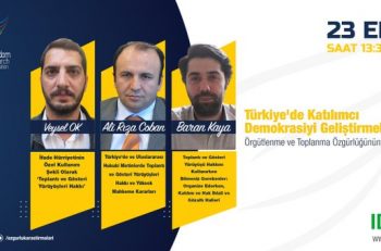 Duyuru Eğitim Özgürlük Araştırmaları Derneği ‘Örgütlenme ve Toplanma Özgürlüğünün Güçlendirilmesi’ Eğitimi Başlıyor Sivil Sayfalar 12 Ekim 2021 Özgürlük Araştırmaları Derneği'nin, “Türkiye'de Katılımcı Demokrasiyi Geliştirmek için Örgütlenme ve Toplanma Özgürlüğünün Güçlendirilmesi” Projesi kapsamında hazırladığı ve 23 Ekim 2021 tarihinde yapılacak olan eğitime başvurular başladı.