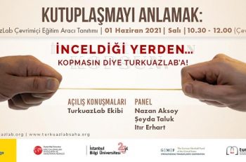 Türkiye’de Kutuplaşmayı Azaltmaya Yönelik Stratejiler ve Araçlar Projesi (TurkuazLab) kapsamında hazırlanan Kutuplaşmayı Anlamak Çevrimiçi Eğitim Aracı yayına giriyor. Bu kapsamda hazırlanan TurkuazLab Çevrimiçi Eğitim Aracı tanıtımının yapılacağı etkinlik 1 Haziran 2021 saat 10.30-12.00 saatleri arasında olacak.