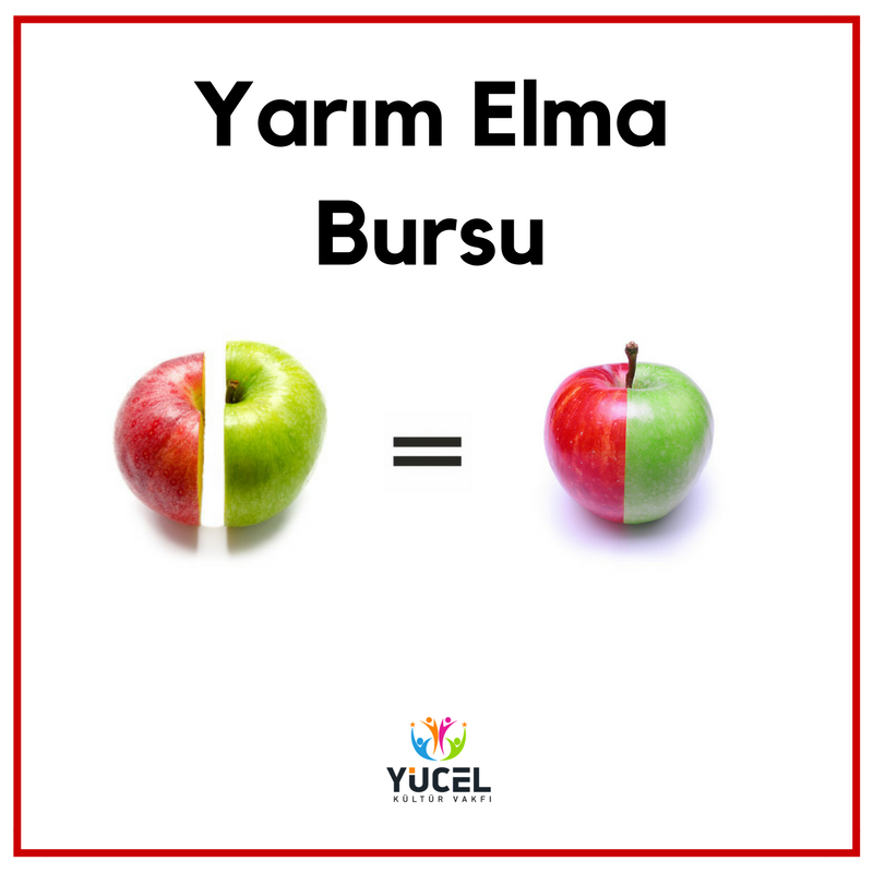 İhtiyaç sahibi, başarılı üniversite öğrencileri için verilen Yarım Elma Bursu başvuruları 15 Ağustos’ta başlıyor. Başvuru Tarihi: 15 Ağustos 2017 – 15 Ekim 2017 Başvurular vakfın web sitesi üzerinden online olarak yapılabilir.